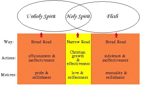 We must be careful in the discussion of this matter, for the state of the universe is such that our main enemies are not flesh, but spirit, and therefore even if we have activities that may be defined as spiritual, that does not mean that they are holy. In the world today, it is often a great complement in some circles to be described as a “spiritual” individual. This ought to give us pause, for Satan is “spiritual” in this loose sense of the word, being a spirit himself. Yahweh the Almighty has sent His very Son to live and die for us, “that we should be holy and without blame before Him in love.” (Ephesians 1:4) To be holy is to be not merely spiritual, but of God’s Holy Spirit. Thus in our discussion of the table above which deals with the difference between spirit and flesh, we saw that there is a wrong way to be on the side of the “spirit.” Those who take things given to be blessings, and use them to extremes, or without love as their motive, will probably find themselves in greater error than those who merely drag along after the sensory gratification of fleshly lusts.